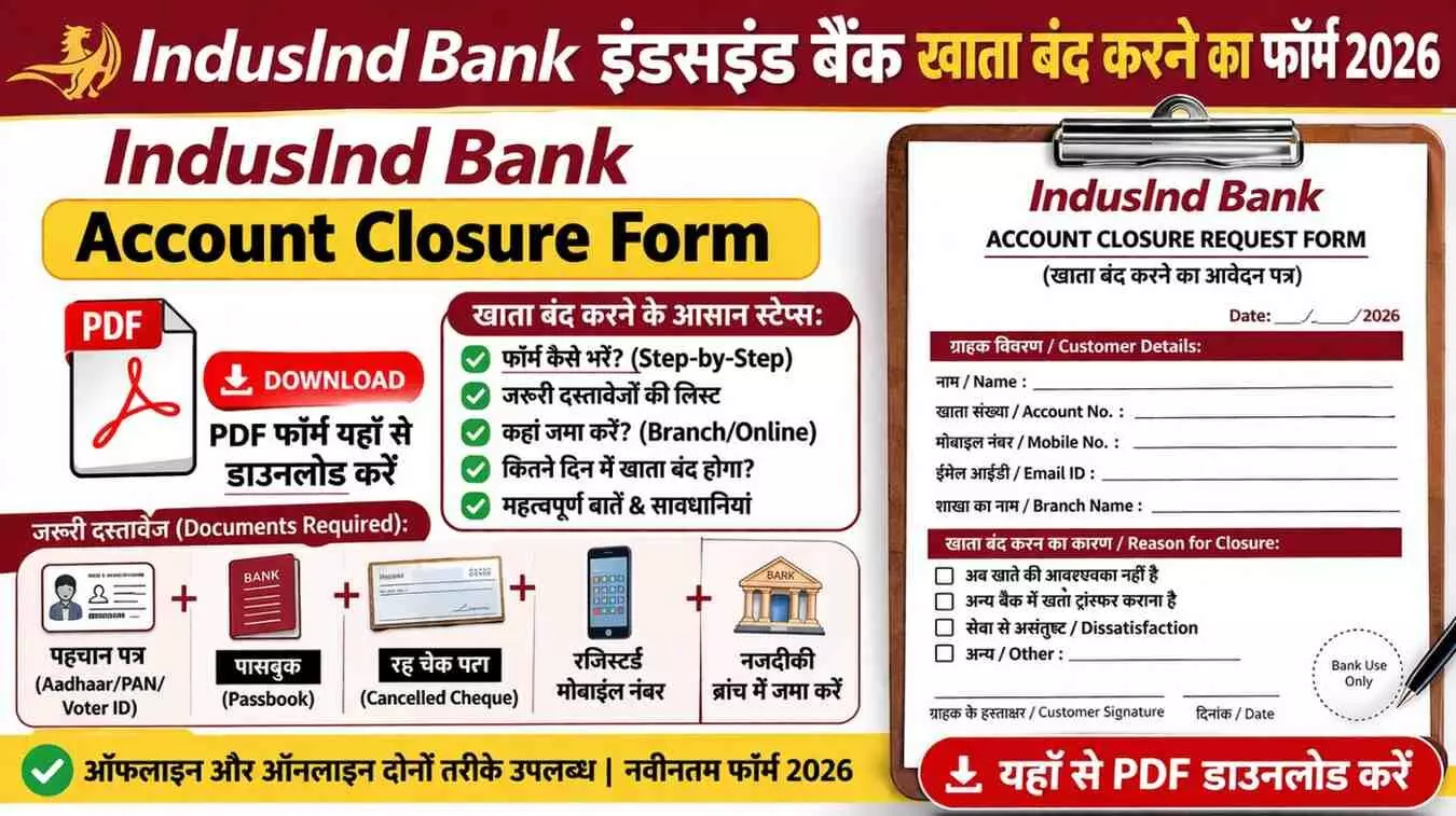 इंडसइंड बैंक खाता बंद करने का फॉर्म 2026 | IndusInd Bank Account Closure Form PDF Download