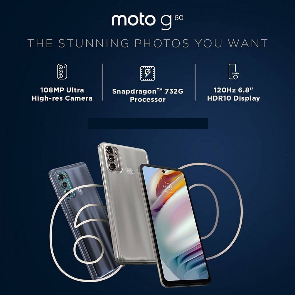 Motorola ने पिछले ही हफ्ते Moto G60 को Moto G40 के साथ भारत में लॉन्च किया था। Moto G60 की बिक्री फ्लिपकार्ट के जरिए शुरू हो चुकी है। फ़ोन में ट्रिपल रियर कैमरा और 108 Megapixel का प्राइमरी कैमरा है। फ़ोन में 6,000mAh की बैटरी है। Moto G60 6GB+128GB वैरिएंट में आता है और इसकी कीमत 17,999 रुपया है।