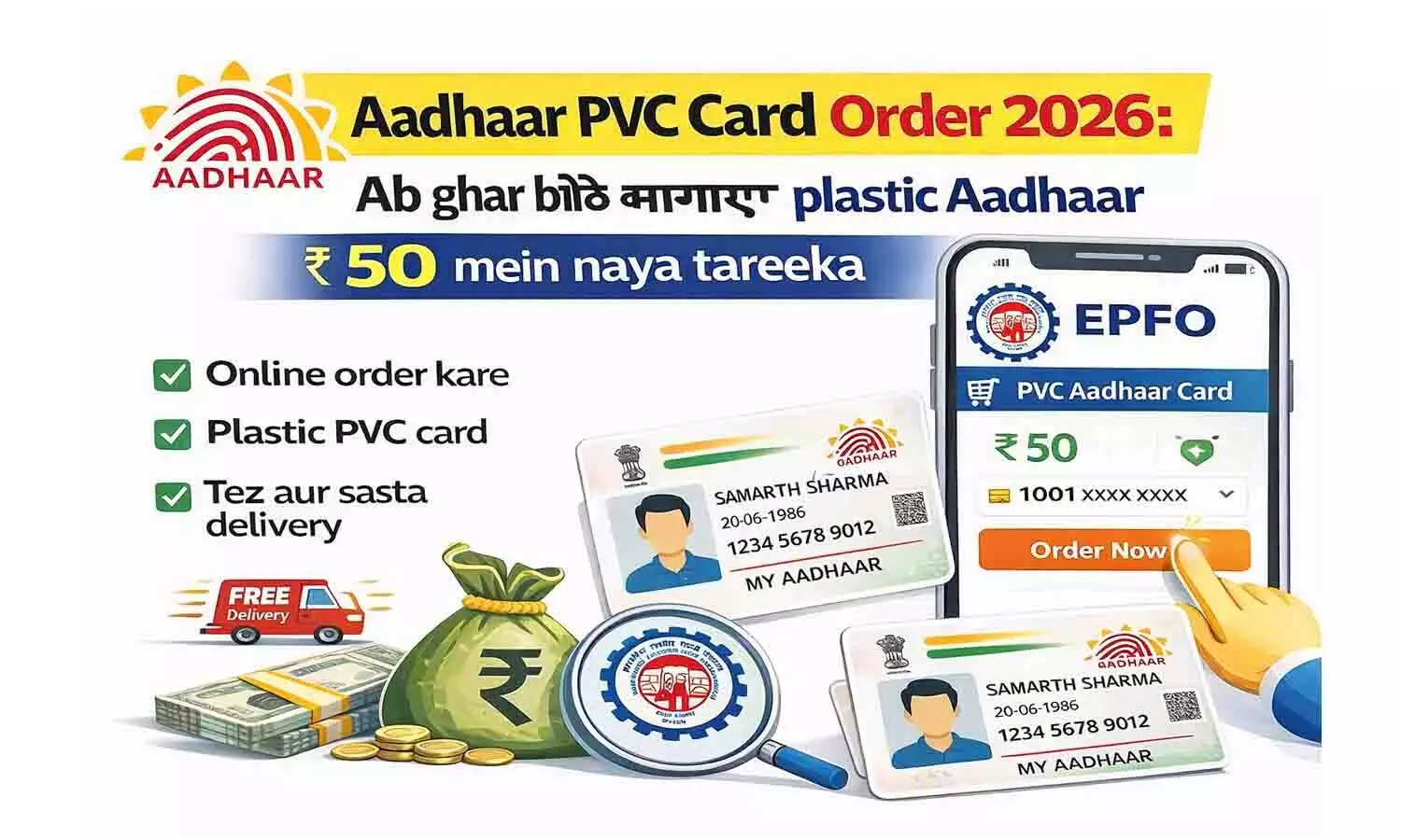 Aadhaar PVC Card Order 2026: अब घर बैठे मंगाएं प्लास्टिक आधार, ₹50 में नया तरीका