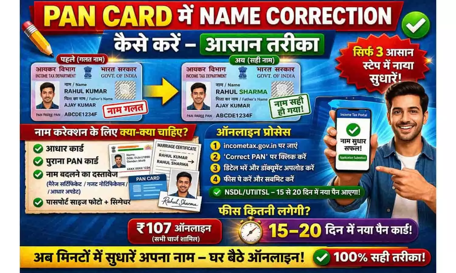 - पैन कार्ड में नाम सुधार: 2026 की नई ऑनलाइन प्रक्रिया