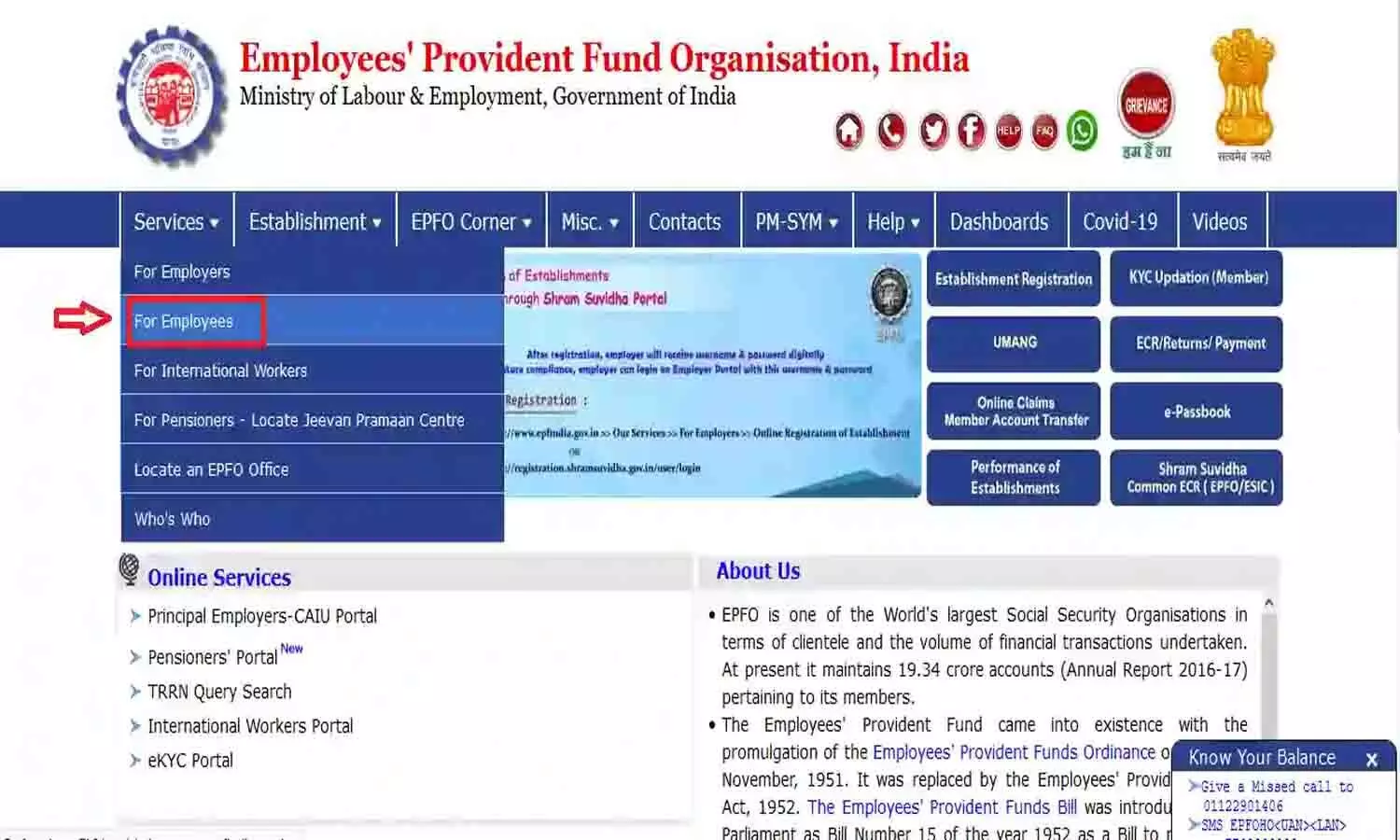 Know Your UAN ऑप्शन से मोबाइल और Aadhaar के जरिए।