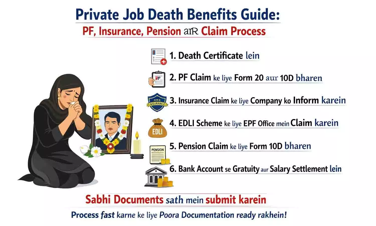 प्राइवेट नौकरी में मौत होने पर नॉमिनी को क्या करना चाहिए? Private Job Death Benefits Guide: PF, Insurance, Pension और Claim Process पूरी लिस्ट
