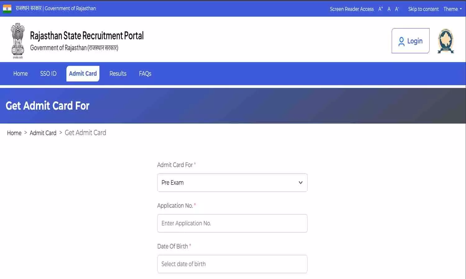 एडमिट कार्ड केवल आधिकारिक पोर्टल https://recruitment.rajasthan.gov.in/postdetailgetadmitcardservlet से ही निकाला जा सकता है। उम्मीदवारों को किसी भी फेक लिंक से बचना चाहिए।