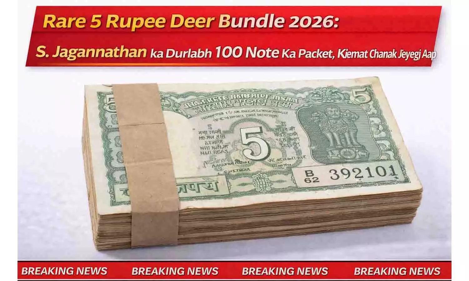 Rare 5 Rupee Deer Bundle 2026: S. Jagannathan का दुर्लभ 100 नोट का पैकेट, कीमत देख चौंक जाएंगे आप