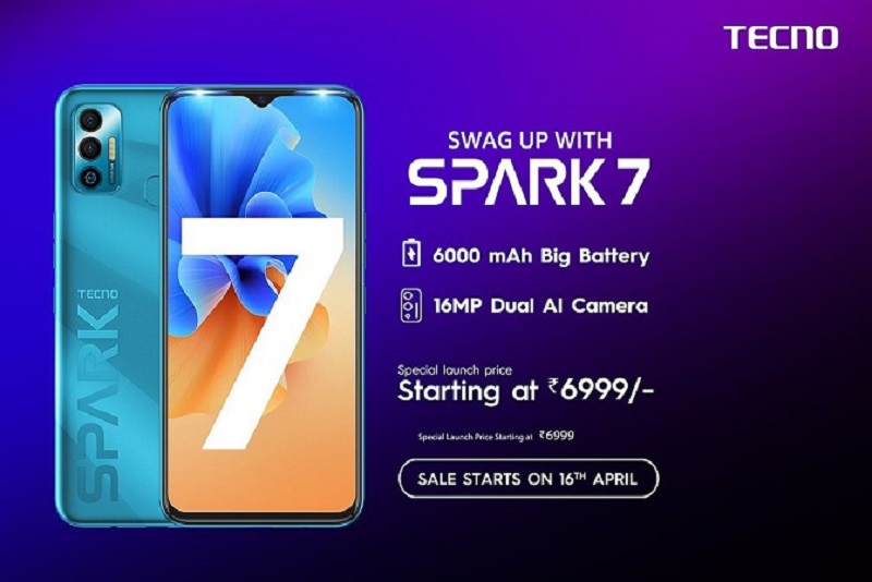 Tecno Spark 7 को भारत में लॉन्च कर दिया गया है। नया फोन एक्सक्लूसिव तौर पर 16 अप्रैल से अमेज़न इंडिया पर उपलब्ध होगा। Tecno Spark 7 में 6,000mAh की बैटरी, मीडियाटेक के Helio A25 प्रोसेसर और 64GB तक की इंटरनल स्टोरेज के साथ आता है।
