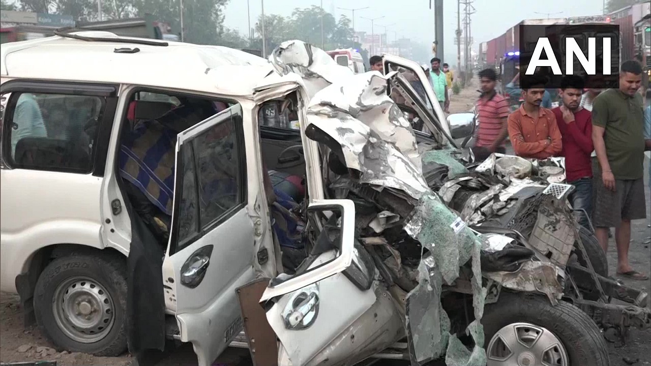 Agra: Eight people died in a collision between a truck and a car in Etmauddaula area today morning. "Four people are injured and have been rushed to a hospital. The truck is from Nagaland & the car is bearing registration number of Jharkhand," says SP City Botre Rohan Pramod. pic.twitter.com/ZozBcoscLm