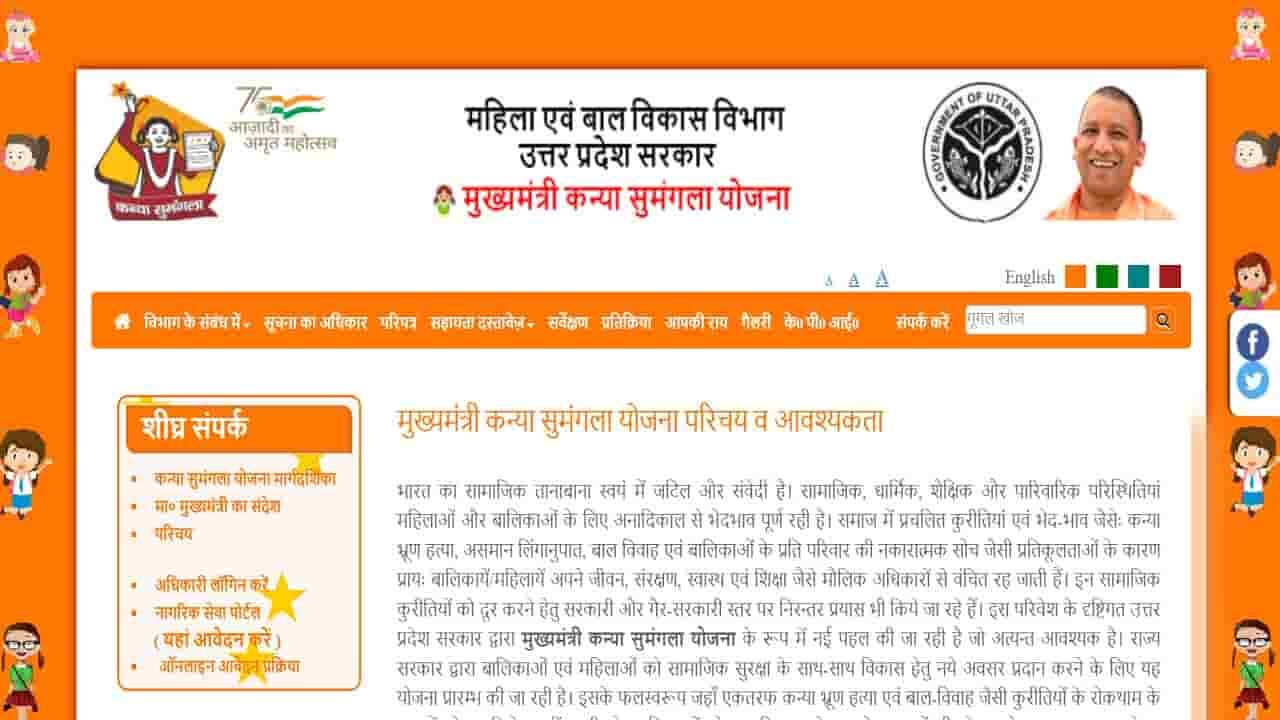 उत्तर प्रदेश सरकार के बेटियों के लिए अनेकों प्रकार के लाभकारी और महत्वकांक्षी योजना का संचालन उत्तर प्रदेश सरकार के द्वारा किया जा रहा है अगर आप भी उत्तर प्रदेश में निवास करते हैं तो आपको मुख्यमंत्री कन्या सुमंगला योजना (Mukhya Mantri Kanya Sumangala Yojana) के बारे में जानकारी होनी चाहिए जिसके तहत सरकार बेटियों को ₹15000 की आर्थिक सहायता चरणबद्ध तरीके से प्रदान करेगी जब तक उनकी पढ़ाई लिखाई उच्च शिक्षा पूरी नहीं हो जाती है अब आपके मन मे सवाल आएगा कि कन्या सुमंगला योजना क्या है आवेदन करने की प्रक्रिया क्या है कौन कौन से डॉक्यूमेंट लगेंगे योग्यता क्या होगी अगर इसके बारे कुछ भी नहीं जानते हैं तो हम आपसे अनुरोध करते हैं कि इस पोस्ट को आखिर तक पढ़े-