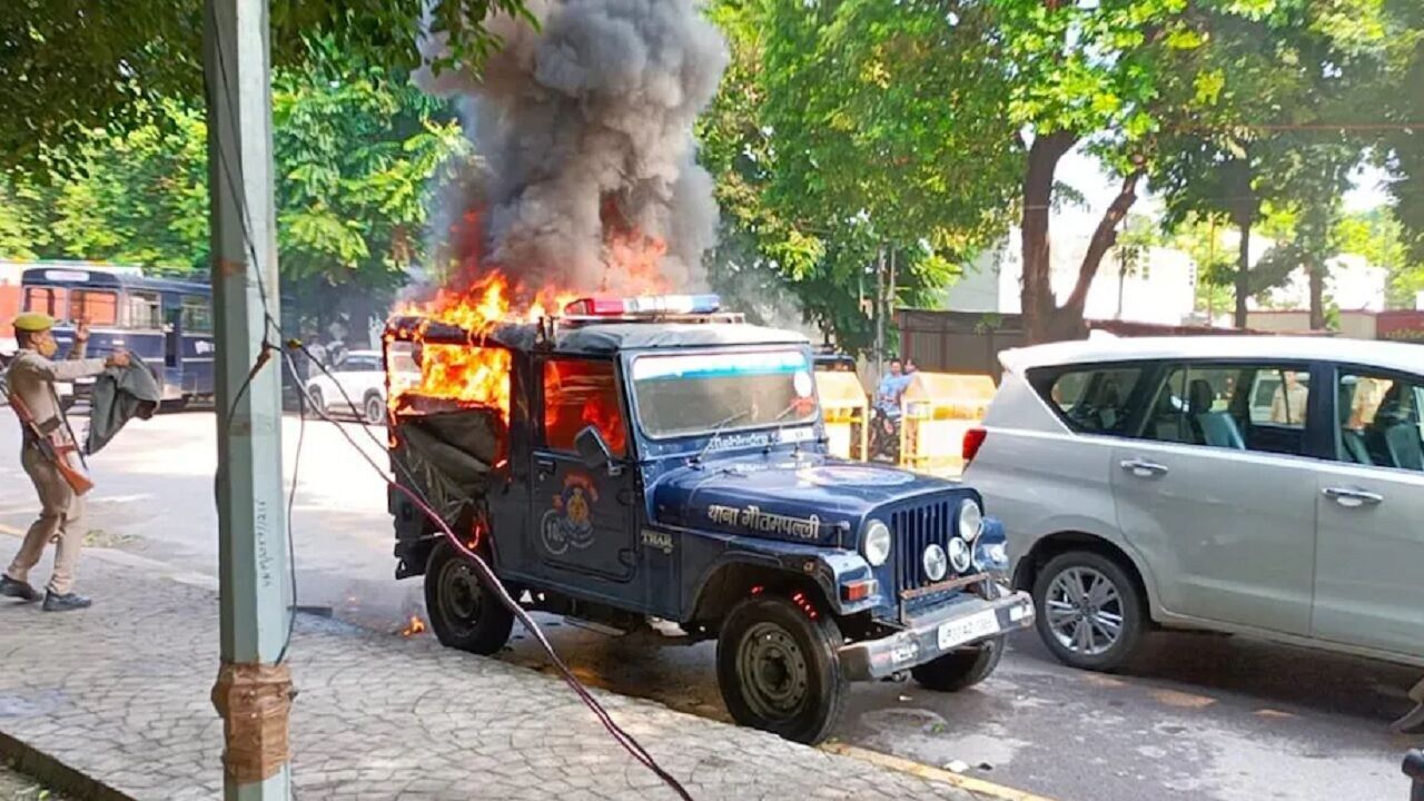 उत्तरप्रदेश के लखीमपुर खीरी (Lakhimpur Khiri) में रविवार को हुई हिंसा की आग राजधानी लखनऊ तक पहुंच गई है. राज्य में कई विपक्षी नेताओं को नजरबंद कर दिया गया है. सपा अध्यक्ष और उत्तरप्रदेश के पूर्व मुख्यमंत्री अखिलेश यादव को पुलिस ने हिरासत में ले लिया है. दरअसल अखिलेश को राज्यपुलिस लखीमपुर खीरी जाने से रोक रही थी इतने में ही वो सड़क पर ही प्रदर्शन करने लगे जिसके बाद पुलिस ने उन्हें अरेस्ट कर लिया। गौरतलब है कि बीते रविवार को लखीमपुर खीरी में किसानों के विरोध प्रदर्शन के दौरान केंद्रीय राज्य गृह मंत्री के अजय मिश्र के बेटे आशीष मिश्र ( सोनू ) के काफिले से कुचले जाने पर 9 लोगों की मौत हो गई है। जिसके बाद ये मामला जंगल में लगी आग की तरह भड़कता जा रहा है। उत्तरप्रदेश की राजधानी लखनऊ में प्रदर्शनकारियों ने पुलिस की एक गाडी को आग के हवाले कर दिया है।
