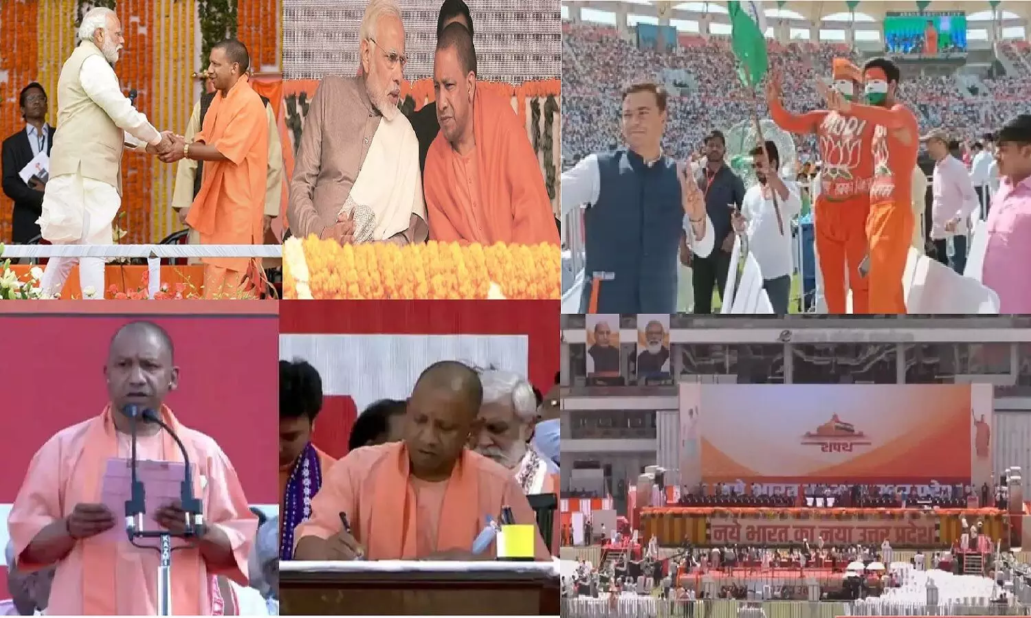 UP cabinet list: शुक्रवार दोपहर 4 बजे से यूपी की राजधानी लखनऊ में मौजूद अटल स्टेडियम में उत्तर प्रदेश के मुख्यमंत्री योगी आदित्यनाथ का भव्य शपथ ग्रहण समारोह प्रारम्भ हुआ, इस दौरान प्रधानमंत्री मोदी, गृहमंत्री अमित शाह, सहित कई केंद्रीय मंत्री और देश के बड़े उद्योगपति शामिल हुए, योगी ने खुद फोन कर पूर्व सीएम अखिलेश यादव, मुलायम सिंह, मायावती को बुलावा दिया था साथ सोनिया गांधी, राहुल और प्रियंका को भी निमंत्रण दिया गया था.