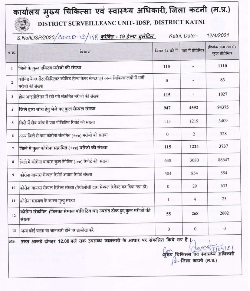 12 अप्रैल को स्वास्थ्य विभाग द्वारा जारी आंकड़ों के अनुसार जिले भर से रिकॉर्ड 166 नए पॉजिटिव केस सामने आएं हैं. ये 1968 लोगो की जांच में से निकले पॉजिटिव केस हैं. इसके पहले रविवार को आई जांच रिपोर्ट में 107 संक्रमित मिले थें.