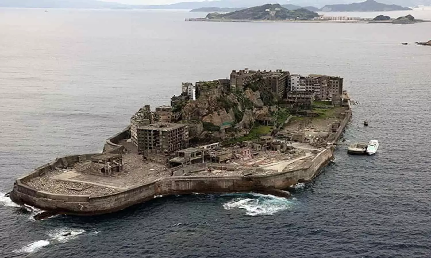 सन 1890 में इस जगह को मिस्तुबिशी नाम के शख्स ने खरीदा था और यहाँ पर जापान की पहली नौ मंजिल क्रंकीट की बिल्डिंग बनवाई थी। 1887 से 1974 तक यहाँ पर कोयले की खुदाई होती थी। इस आइलैंड में हजारों वर्कर रहते थे। लेकिन वर्तमान में यहाँ का आलम यह है की परिंदा भी पर मारने में सोचता है। कहने का मतलब है यह स्थान वर्तमान में वीरान जगह बन चुका है।
